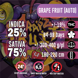 PLANT OF LIFE - GRAPE FRUIT ✨ FEMINISIERT 🌿 Typ: Sativa 75% / Indica 25% 🌺 Blütezeit: 84-98 Tage 🌱 Ungefähre Produktion: 300-400 g 🌳 Höhe: 180-220 cm ⚡ THC: 19%