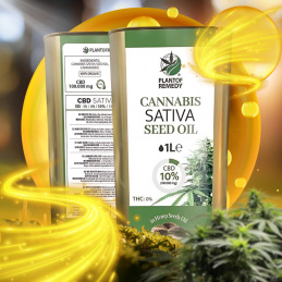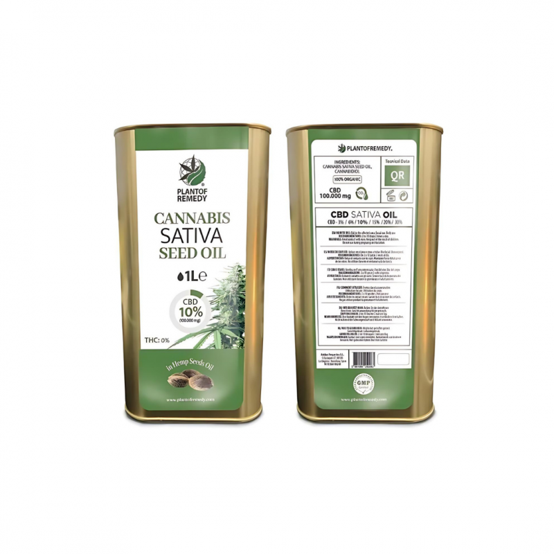 Cannabis Oil 10% CBD 1 liter format By plant of remedy Completely organic and natural. Packaging in opaque metal bottles to provide protection against blows, oxidation and light sources. 1 liter bottle - (100,000mg CBD)