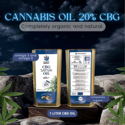 Aceite de Cannabis Sativa 20% CBG Formato de 1 Litro por PLANT OF REMEDY Completamente orgánico y natural. Envasado en botellas metálicas opacas para brindar protección contra golpes, oxidación y fuentes de luz. Botella de 1 Litro - (200.000mg CBG)