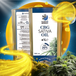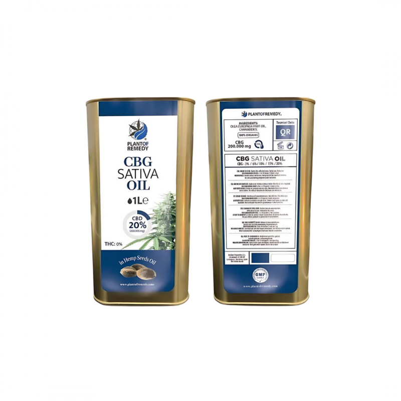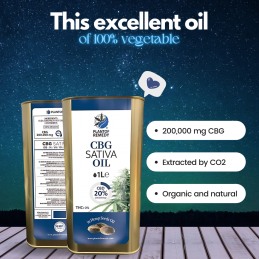 Huile de cannabis 20% Format CBG 1 litre Par plante de remède Complètement organique et naturel. Emballage dans des bouteilles métalliques opaques pour offrir une protection contre les coups, l'oxydation et les sources de lumière. Bouteille de 1 litre - (200 000 mg CBG)