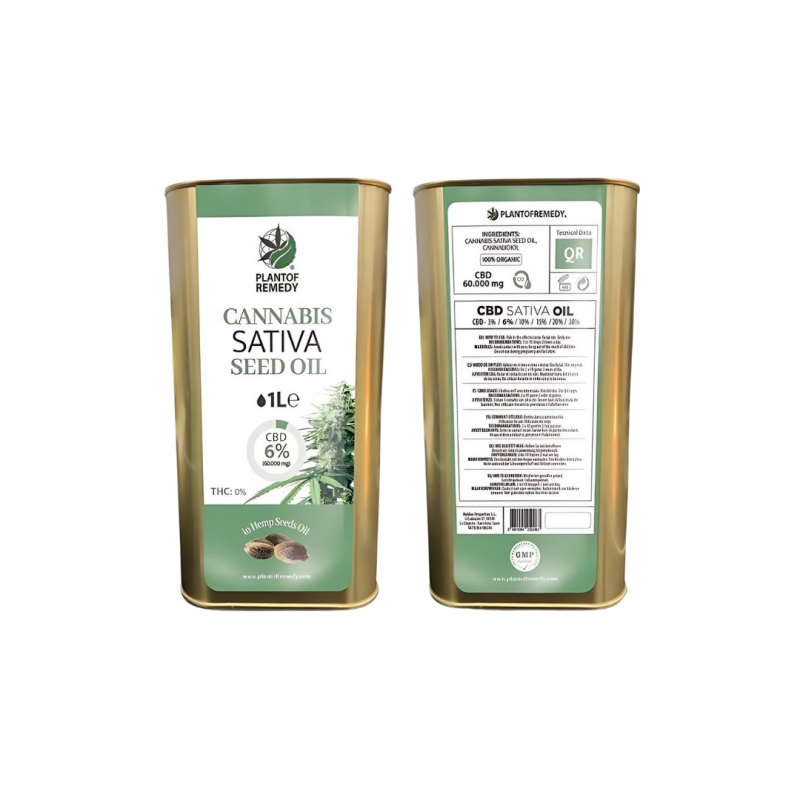 Olio di cannabis 6% CBD 1 litro Formato Per Plant of Remedy Completamente organico e naturale. Imballaggio in bottiglie di metallo opaco per fornire protezione da colpi, ossidazione e fonti di luce. Bottiglia da 1 litro - (60.000 mg di CBD)