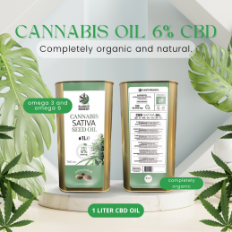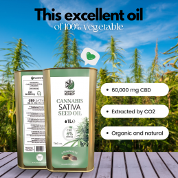 Olio di semi di canapa Con 6% CBD (60.000 mg) 1 litro 1 bottiglia di materiale metallico resistente alle spedizioni. Completamente organico e naturale.